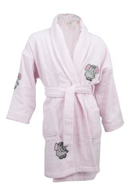 Roze kinderbadjas van 100% katoen. De olifanten maken de badjas helemaal af. En olifanten brengen geluk.........
