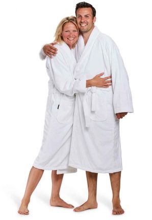 Ook in het model van de badjas valt te variëren. Zo kun je bijvoorbeeld kiezen voor een witte badjas met capuchon, een witte badjas met sjaalkraag of een witte kimonobadjas. Alle drie hebben ze net even een andere uitstraling. Een badjas met capuchon heeft vaak iets speels, terwijl een sjaalkraag er juist luxueus uitziet. Een kimonobadjas is licht lekker praktisch en wordt het meest gebruikt als saunabadjas. Daarnaast kun je kiezen tussen een korte badjas of lange badjas en natuurlijk voor onze leuke korte, witte badjas met rits. Super handig als je veel beweegt en je badjas vaak open valt.