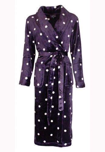 Bij unieke dames hoort een badjas in een unieke kleur! Deze donkerpaarse badjas met all-over stippenpatroon is gemaakt van 100 % fleece.