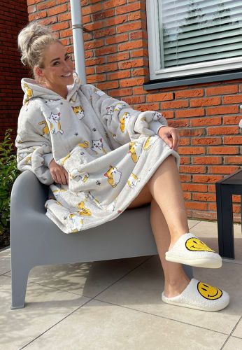 Dit oversized model is onesize past dames & heren met de maat XS t/m XXL. Lengte 96cm