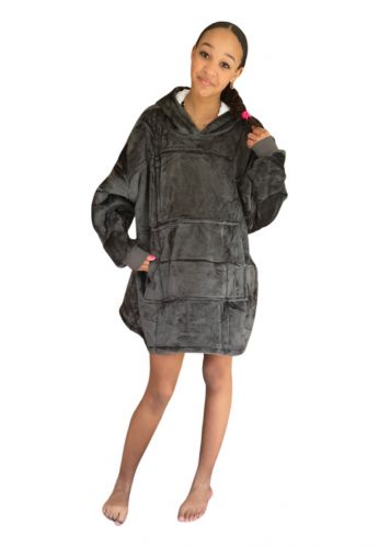 Draagbare deken met capuchon & mouwen - kind - antraciet