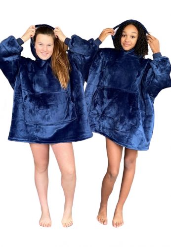 Draagbare deken met capuchon & mouwen - kind - blauw