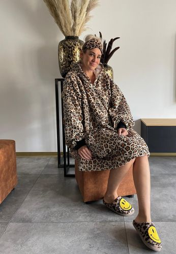 Hebben jullie deze leopard sloffen en oogmasker ook? Ik wil het allemaal. Deze snuggie gisteren besteld en net binnen gekregen. Echt heerlijk zacht. Super blij mee.