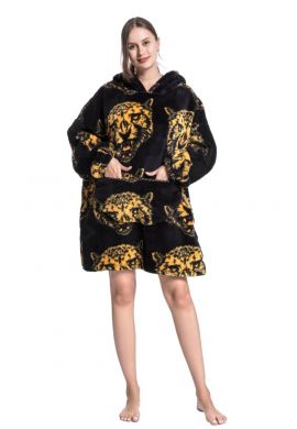 Extra lange draagbare deken met capuchon & mouwen - animalprint