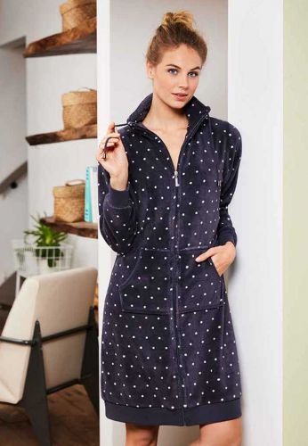 Het merk ‘Rebelle’ blijft verrassen! Shop nu makkelijk & snel deze rits badjas met cute stippenprintje.