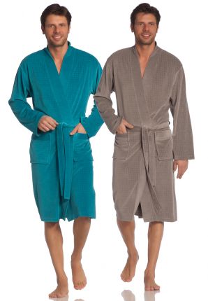 Een herenbadjas om in de sauna te dragen moet aan een aantal eisen voldoen. Zo zijn onze saunabadjassen en stuk dunner en luchtiger dan een badjas die je thuis kunt gebruiken. Dit is hard nodig, omdat je je lichaamswarmte in de sauna natuurlijk wel kwijt moet. In een dikke badjas van zware stof gaat dit niet lukken. Daarnaast heeft een herenbadjas voor de sauna of spa een hoge vochtopname. In de spa zit je doorgaans niet alleen in de sauna, maar wissel je deze rondjes ook wel af met het zwemmen van een aantal baantjes, het ontspannen in de jacuzzi of het nemen van verkwikkende douches.