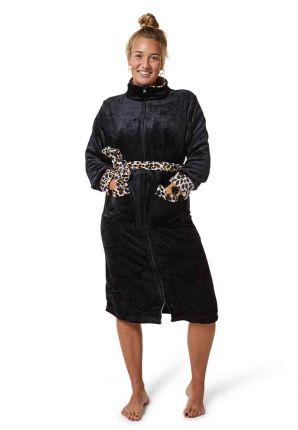 Voor dames hebben we daarnaast de prachtige badjassen met rits van . Deze badjassen zijn lang en gemaakt van zacht fleece. Ze hebben geen ‘typisch’ badjasontwerp, maar zien er in plaats daarvan meer uit als een lang en zacht vest, of zelfs als een jas die je ook naar buiten zou kunnen dragen. De mouwen lopen wat taps toe, de kraag sluit mooi aan en de badjas is getailleerd, zodat hij goed om je lichaam valt. In zo’n ochtendjas kun je best nog eens bezoek ontvangen. Deze badjassen zijn in verschillende kleuren te koop.