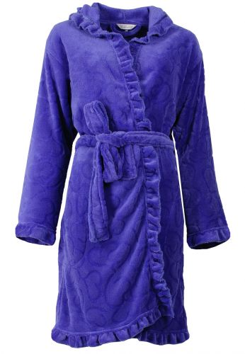 Wat een leuk model! Deze korte badjas paars voorzien van hartjes (gestanst) en een leuk detail is uiteraard het randje.