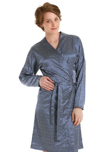 Ultra dunne dames badjas. Deze donkerblauwe badjas satijn.