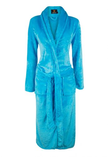 Een fleece badjas voor dames in de frisse kleur turquoise.