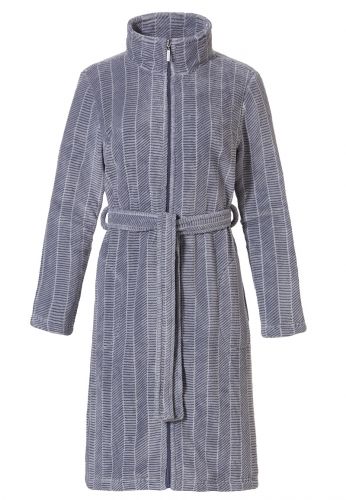 Deze grijze rits badjas met streepjesmotief is van het hoogwaardige badjassenlabel ‘Pastunette’. 100% kwaliteitsfleece.